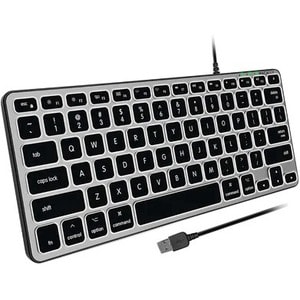 Macally BLMINIZKEYSG - Backlit Compact USB Wired Keyboard - Cable Connectivity - USB Type A Interface - LED - 78 Key(s) - Power, Caps Lock, Function Hot Key(s) - MacBook Pro, MacBook Air, iMac, Notebook - Mac - Scissors Keyswitch - Space Gray