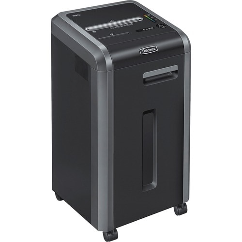 Fellowes Powershred® 225i 100% Jam Proof Strip-Cut Shredder - Continuous Shredder - Strip Cut - 22 Per Pass - for shredding Staples, Credit Card, CD, DVD, Paper Clip, Junk Mail, Paper - 0.219" Shred Size - P-2 - 16 ft/min - 9.50" Throat - 16 gal Wastebin Capacity - Black, Dark Silver